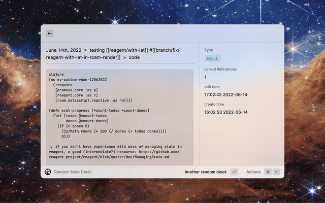 Your Roam graphs at your fingertips! Quickly search, capture and navigate your Roam graphs.