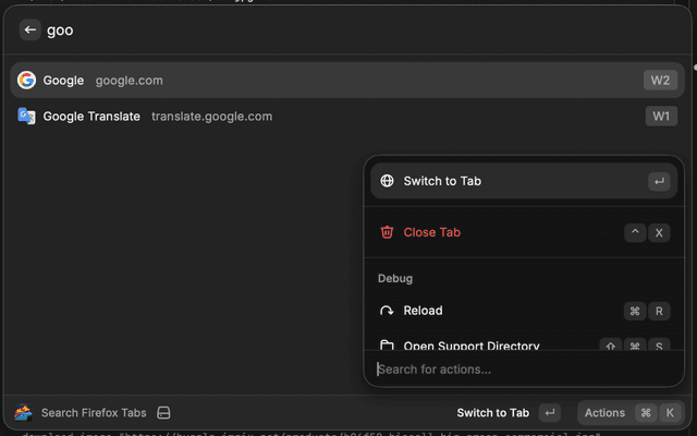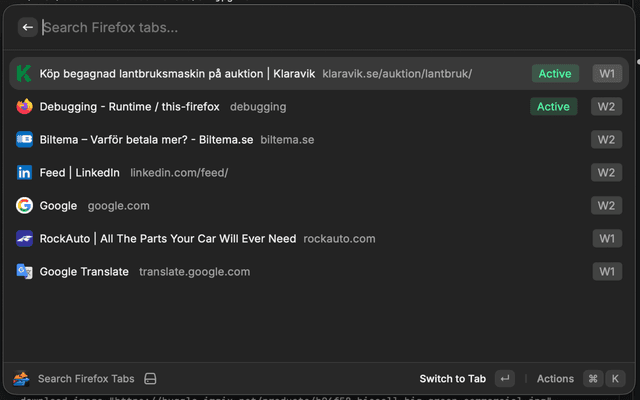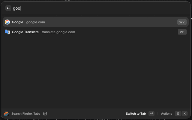 Search and switch open Firefox tabs from Raycast.