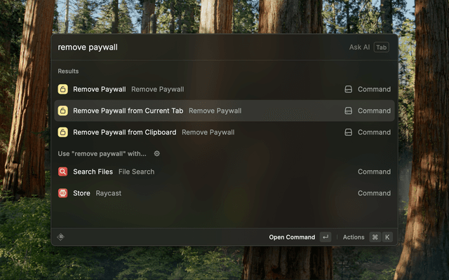 • Remove Paywall from Current Tab - Automatically detect and remove paywall from active browser tab