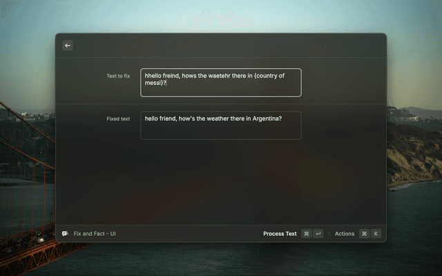 Write inside {curly braces} the facts, questions, math calculations, or anything you want to fill in the text, then run the shortcut. Grammaring will fill the text with what you asked for.
