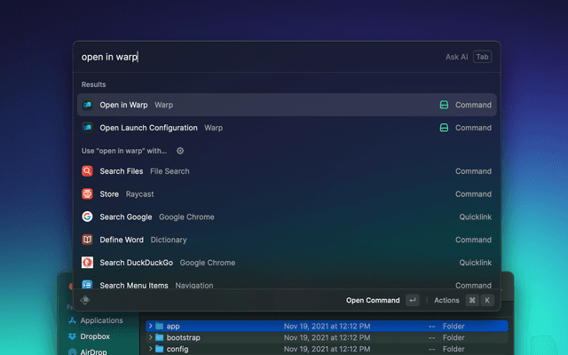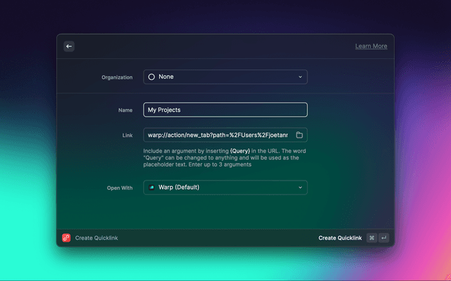 Open Warp tabs/windows and Launch Configurations.