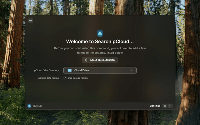 This extension allows you to interact with your pCloud files. Search them through the pCloud APIs, open them directly in Finder using your pCloud Drive.