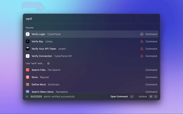 This is a Raycast extension for CyberPanel. With this extension you can manage Users, Packages, Websites, Child Domains, Backups, Databases, Email Accounts, DNS Records and FTP Accounts in CyberPanel using CyberPanel Cloud API (documentation link).