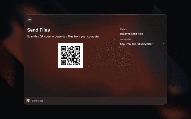 - Receive Files: Scan a QR code from your mobile device to upload files directly to your computer.